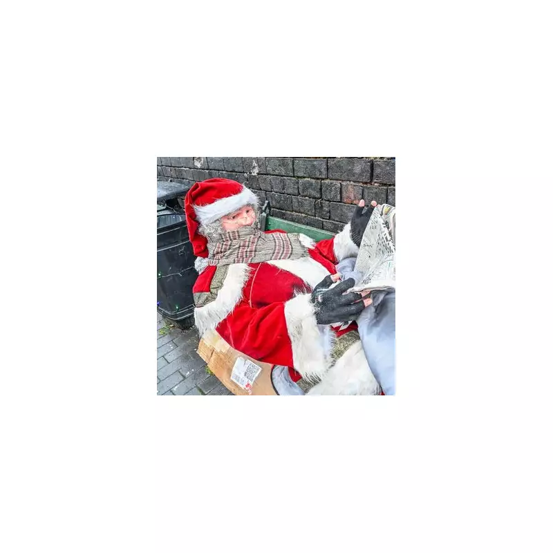 Earlier this week, residents discovered a striking figure of Father Christmas placed on a bench near the celebrated Banksy artwork. This is no typical festive decoration. The mannequin depicts Santa lying down on the bench, using cardboard as a mat and resting his head on a black bin bag—a direct visual reference to the harsh reality faced by many sleeping rough.