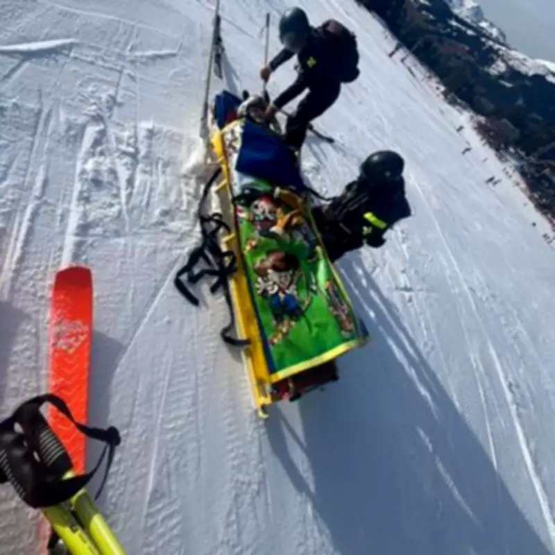 Pictures show paramedics strapping the mortified mother onto a rescue sledge before hauling her off the slope. "I had to be rescued, and my kids found it hilarious," she recalled. "They put me on a stretcher and put a plastic blanket on me. I was completely embarrassed."