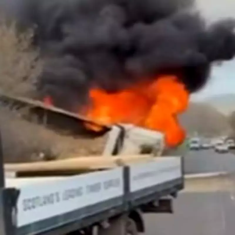 Lorry Explodes in Dramatic A1 Blaze, Tyres Catapulted 30 Feet High