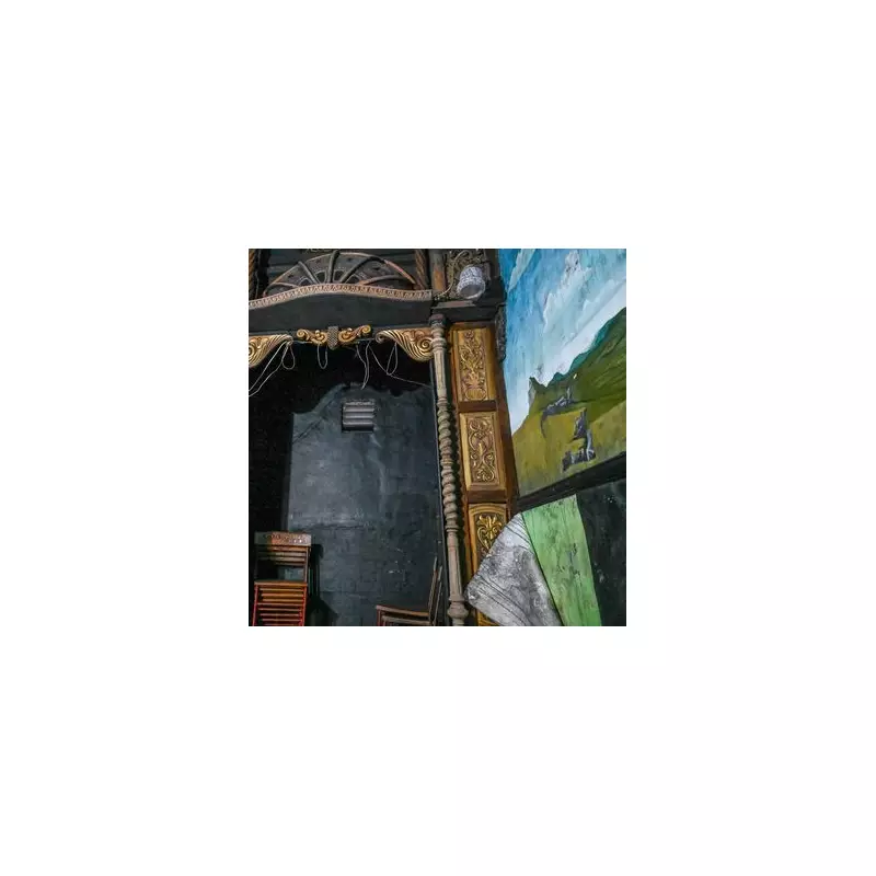 The performance area itself is a testament to creativity, having been originally built from salvaged furniture, discarded table supports, and fragments from a violin. For two decades, former owner Dennis Neale entertained audiences with comedy and his own marionette productions before retiring in 2017.